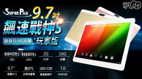 上網查了 【大力推薦】【SuperPad】一般版 飆速戰神S 9.7吋 聯發科四核心 玩家版 平板電腦(2G/16GB)1台(內含保護貼(已預貼)+變壓器 +USB線)搶先看 相關的評價,推薦,開箱文,價格,報價,比較,規格,推薦!